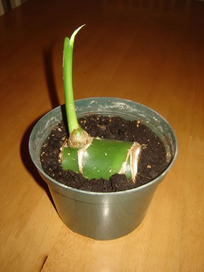 "Green thumb" has never been associated with my name. I am a plant killer. So maybe you can understand why it was such a shock to see my Dieffenbachia plant actually send up a shoot. Apparently I'm just good at growing the poisonous variety. :) Thanks for the plant Mom and Dad...it's been pretty fun to watch our little sprout grow.