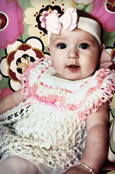 One of us used to wear it. Mom thought it may have been Reese or myself, so she let me have it for awhile to use for Eve. I thought I recognized it, but I looked through my pictures, and didn't see it. I'd love to have something that may have been mine, but I want to make sure it wasn't yours. Anyways, Eve is so cute in it. I think today may be the only day she'll be able to wear it. It's a bit small, but I still love the baby doll look. Thanks for letting me use it, Mom.